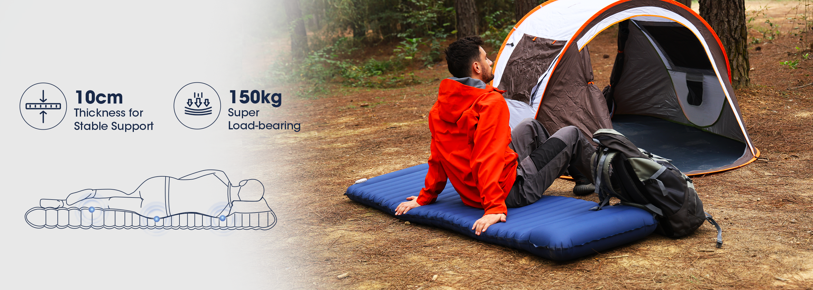 - 【Advanced Support】: Features interconnected air cells for a sturdy 10cm thickness, providing exceptional comfort and support for users up to 150kg.